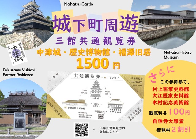 対象施設:中津城(奥平家歴史資料館)・中津市歴史博物館・福澤諭吉旧居/福澤記念館